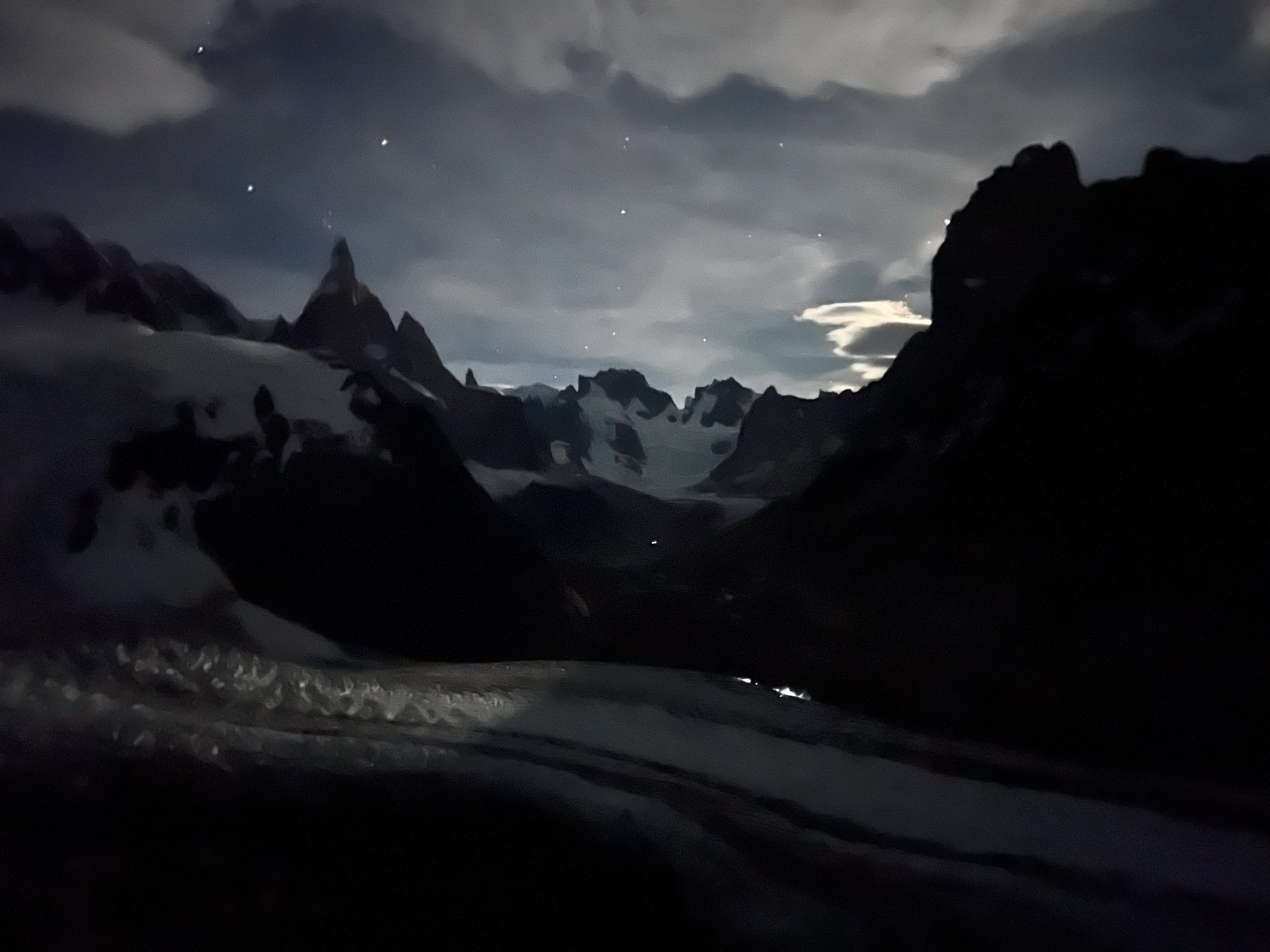 Headlights from CAX walking across the glacier